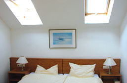Separates Schlafzimmer mit zwei Betten (Doppelbett aber auch einzeln stellbar), 2 große Dachfenstern mit direktem Blick in den Himmel, verdunkelbar.